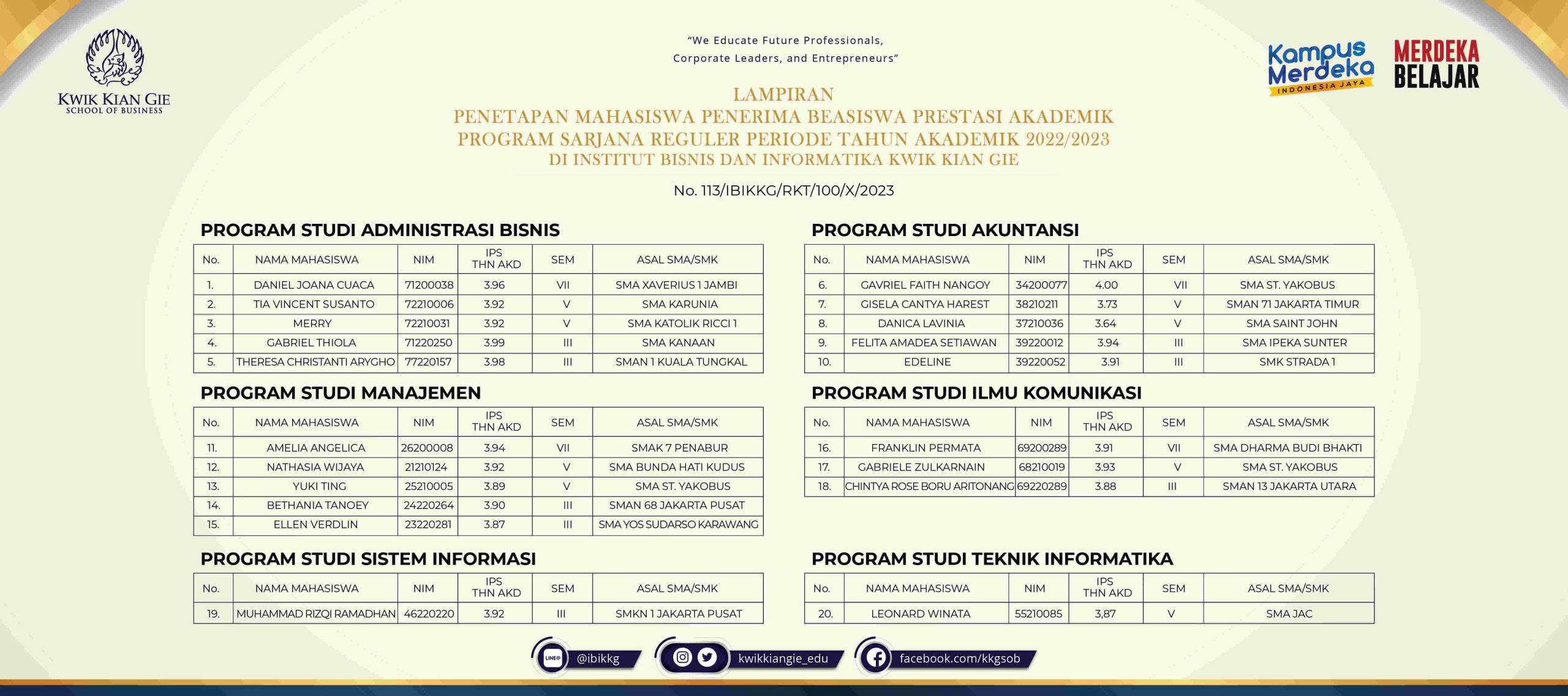 [PENGUMUMAN] Penetapan Mahasiswa Penerima Beasiswa Prestasi Akademik 2022/2023