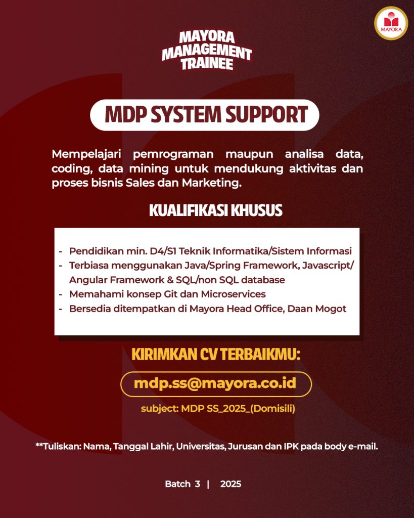 MDP System Support โ Kembangkan kemampuan analisis data, pemrograman, dan sistem pendukung bisnis.