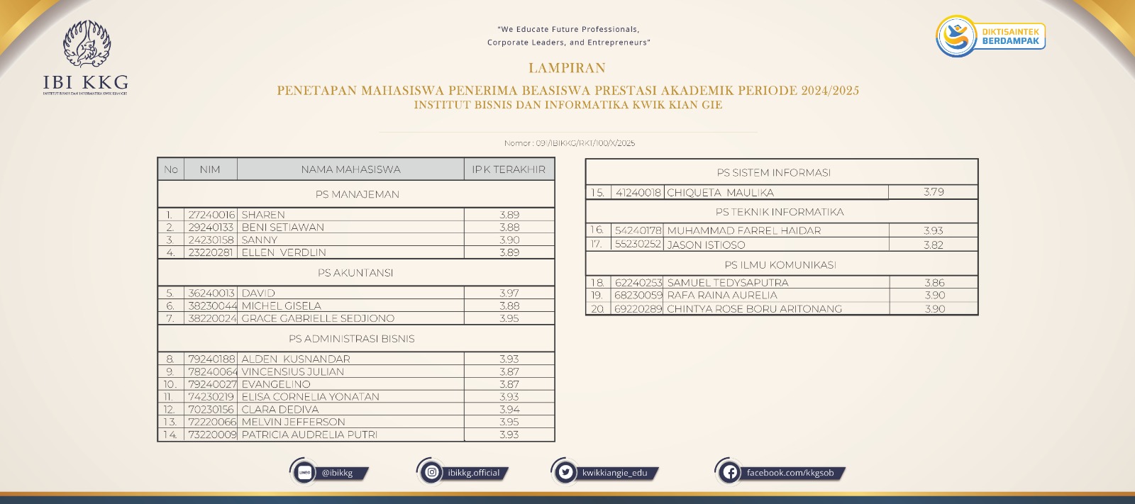 Penetapan Mahasiswa Penerima Beasiswa Prestasi TA 2024/2025