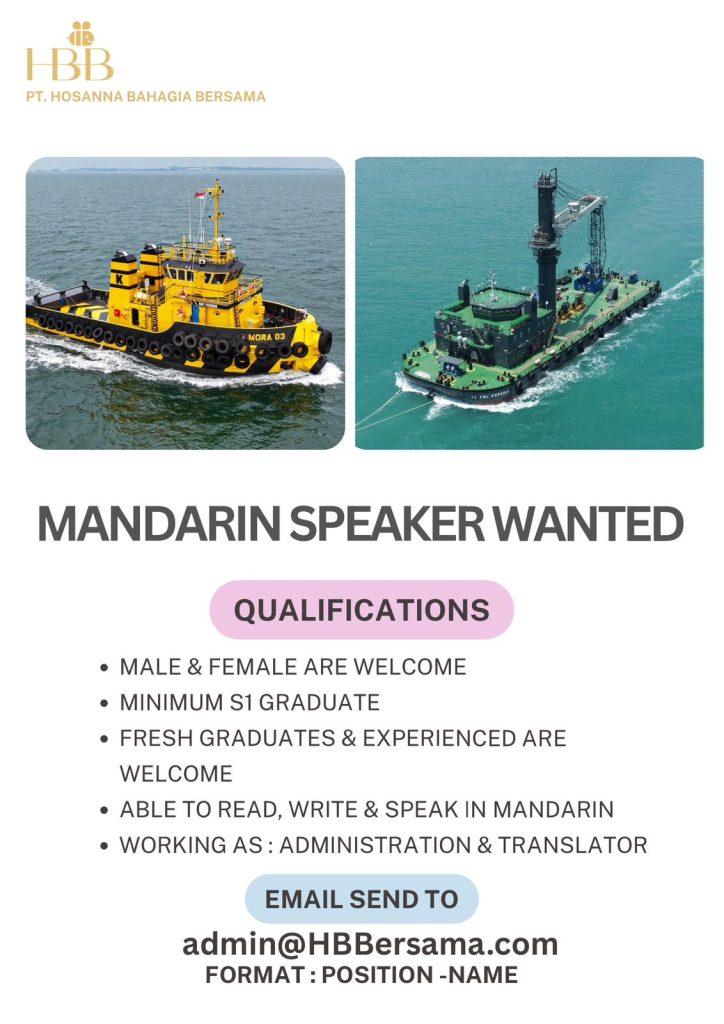 Mandarin Speaker – PT. Hosanna Bahagia Bersama