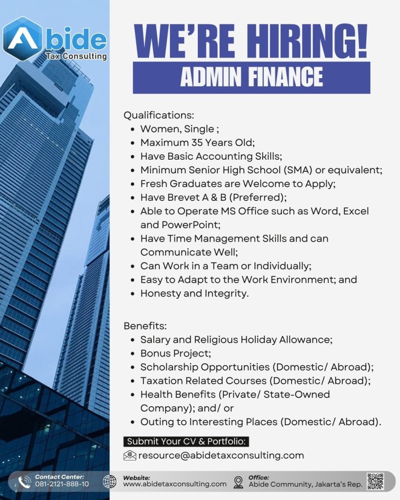Abide Tax Consulting sedang mencari individu yang berdedikasi untuk mengisi posisi: