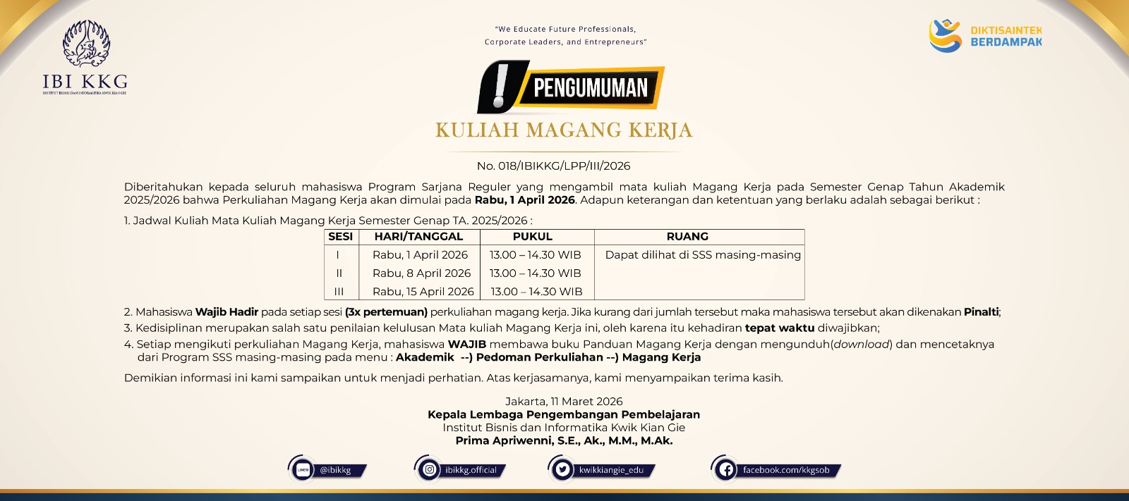 Pelaksanaan Kuliah Magang Kerja Periode 2025/2026 Genap