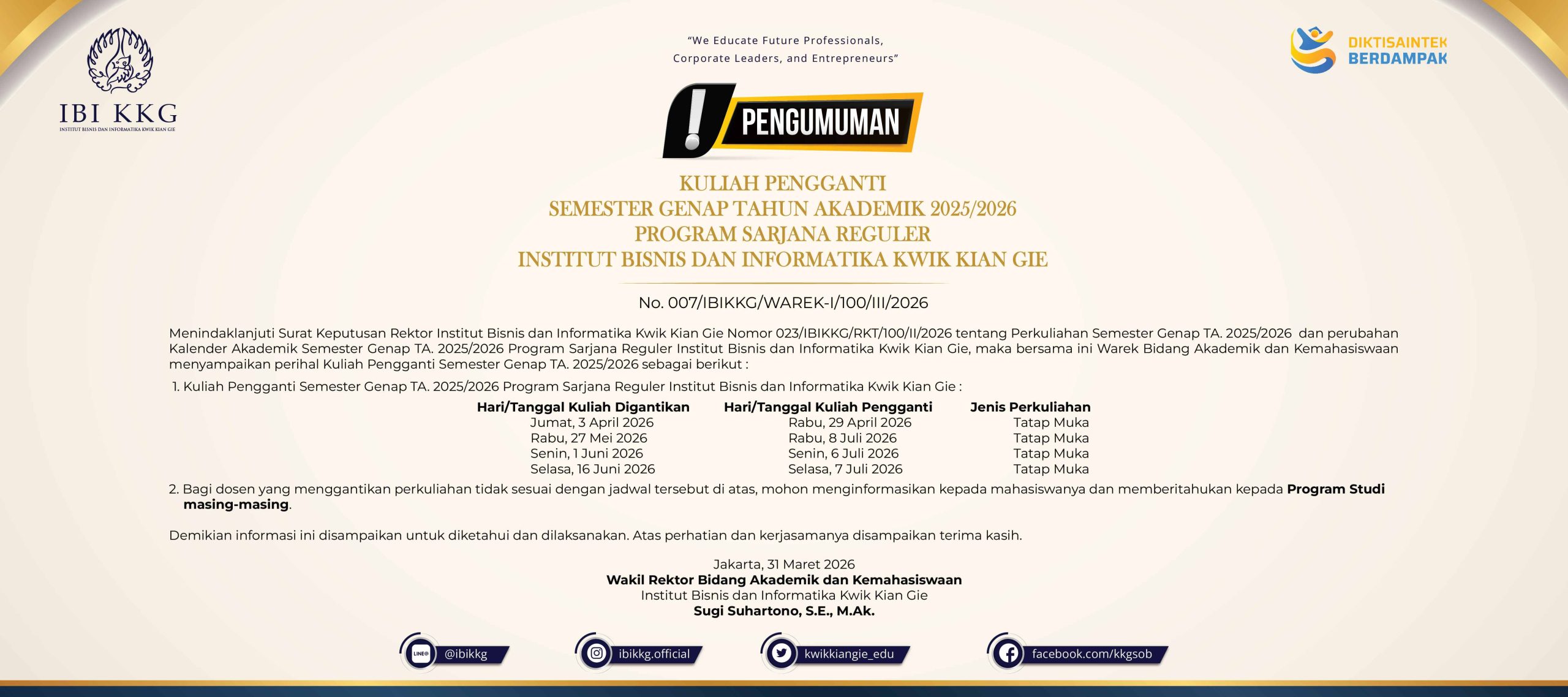 Pengumuman Kuliah Pengganti Semester Genap 2025/2026 S1 Reguler