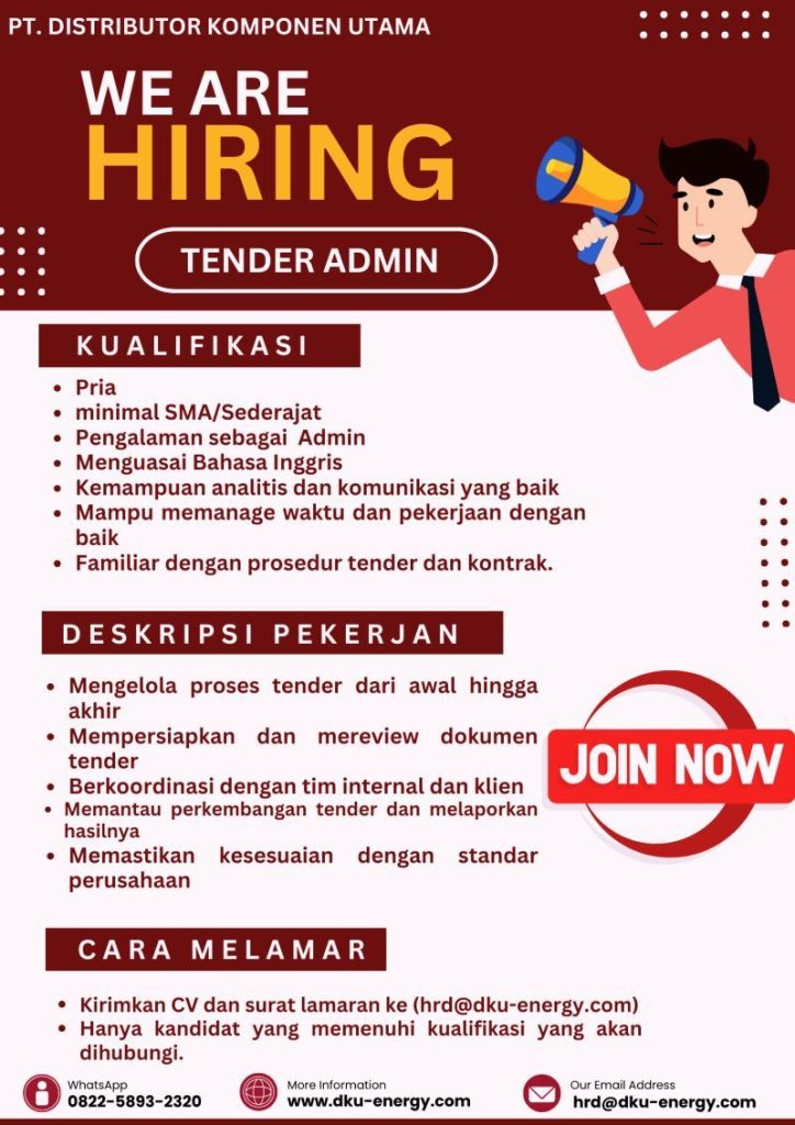 #Hiring #LowonganKerja #TenderAdmin #AdminJobs #CareerOpportunity #DKUEnergy #LokerJakarta #JobHiring