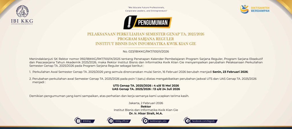 Read MorePengumuman Perubahan Perkuliahan Semester Genap 2025/2026 Kelas Reguler