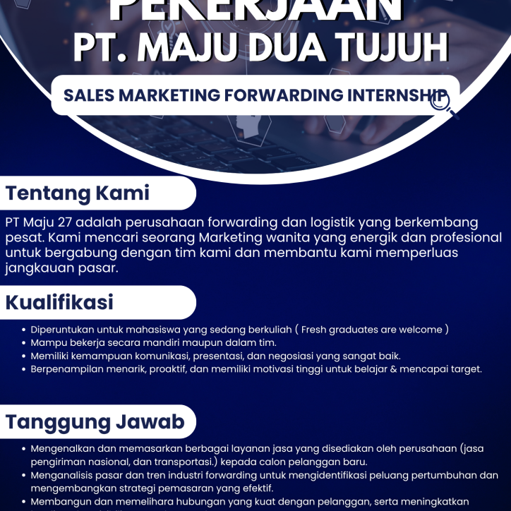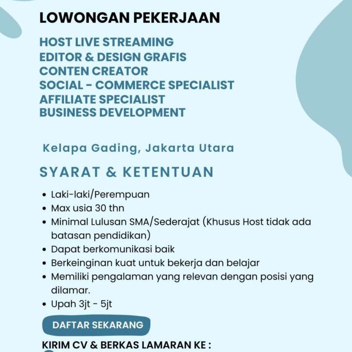PUSAT KARIR Ingin Tahu Prosedur Pemostingan Iklan Lowongan Kerja Dan Pengajuan Kerja Sama ? Klik Disini Oct 21 Artaboga || Orang Tua Group Oct 14 PT Vortex Creo Indonesia (Funcrew Indonesia) Oct 14 Mayora Group Oct 08 BUYBUYGO Internship Digital Marketing, Content Creator & Sales Marketing Oct 07 Finance Staff (AR) || PT. WESTMINDO ESA PERKASA Oct 06 Hiring Management Trainee, PT. FULLMOON JAYA ABADI Sep 22 Accounting Supervisor dan Area Account Manager PT. Pasifik Prima Indah (Orang Tua Group) Sep 15 Management Trainee By, Mal Artha Gading Sep 15 HIRING PT. INDOMARCO ADI PRIMA, By Subsidiary INDOFOOD Sep 15 HIRING PT. NASHUA NUSANTARA 1 2 3 … 32 Next »